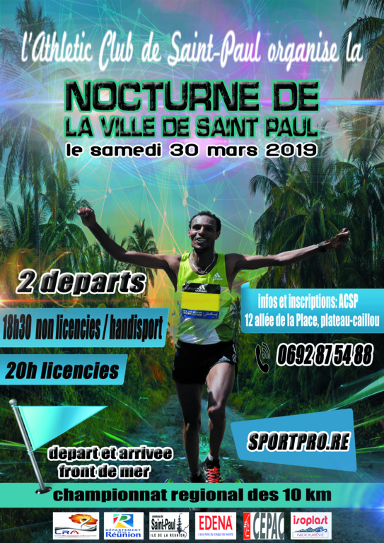 1/ championnat régional des 10km sur route de la Réunion : 10 km nocturne de Saint-Paul le 30 mars 2019